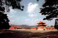 慕陵 慕陵始建于1831年(道光十一年),1836年(道光十六年)竣工。内葬宣宗道光皇帝、孝穆成皇后钮枯禄氏、孝慎成皇后佟佳氏、孝全成皇后钮祜禄氏(咸丰皇帝的生母)。其隆恩殿、东西配殿三座建筑木构架均采用珍贵的金丝楠木做成,殿内外均不施彩绘,而以楠木本色为基调,其天花、群板、绦环板、雀替等处用高浮雕和透雕手法雕刻上千条云龙、游龙和蟠龙(仅隆恩殿内就有木雕龙714条),三殿共有木雕龙1318条,成为清代帝王陵寝中独具风格的艺术。珍品。隆恩殿后增设玉带河一道,石桥三座,卡子墙中央建石级,其上改一般的琉璃门为石牌坊一座及石栏杆。其北方台上直接建圆形宝顶,无二柱门及方城明楼。陵园外无圣德神功碑楼(从此陵开始清帝陵中不再建大碑楼,其原因是由于道光皇帝当朝时国力不足,为提倡节俭,道光皇帝在修建自己陵墓时,下谕旨裁去了圣德神功碑楼等建筑,其后代皇帝也就再没建圣德神功碑楼)。神道无石像生、无望柱(清帝陵惟一无望柱之例)